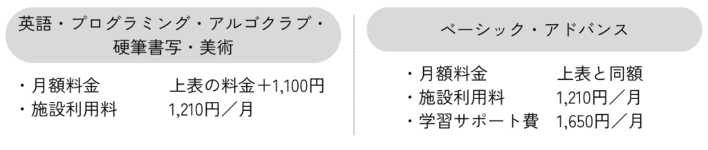 ※午後預かり・1日預かりは、ベーシック(個別指導)つきです。